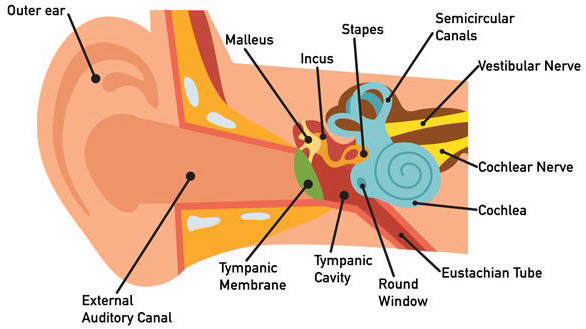 “Otitis media” is the medical term for an ear infection affecting the middle ear. The infection can cause a buildup of fluid, making it difficult for the eardrum and the ossicular chain to work together to move sounds to the auditory nerve. The ossicular chain in the middle ear is made up of the three smallest bones in your body. Called the malleus, incus and stapes, each one is as small as a single grain of rice.